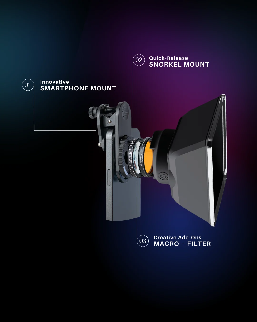 By the way, using the ScubaView snorkel means only the front lens is submerged, while compatible filters and lenses remain well protected.